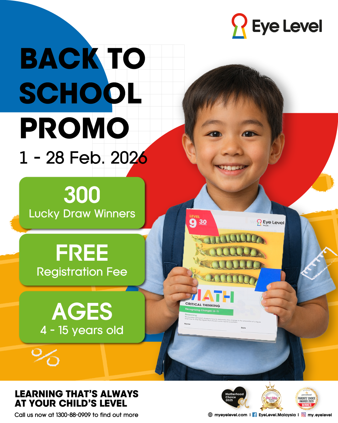 Enroll in Eye Level this February and enjoy RM50 off on the registration fee, free Eye Level Backpack, and a free diagnostic test during our Back To School Promo 2026l. Find out more at myeyelevel.com or Google Eye Level Malaysia. We have over 100 learning centers in Malaysia; feel free to visit any of them.