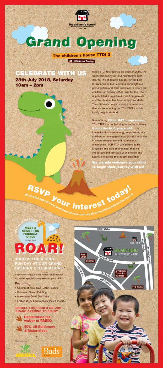 Come join us in this auspicious celebration (28th July, 10am - 2pm) and get engaged in all the fun DINO-activities specially prepared for your child!