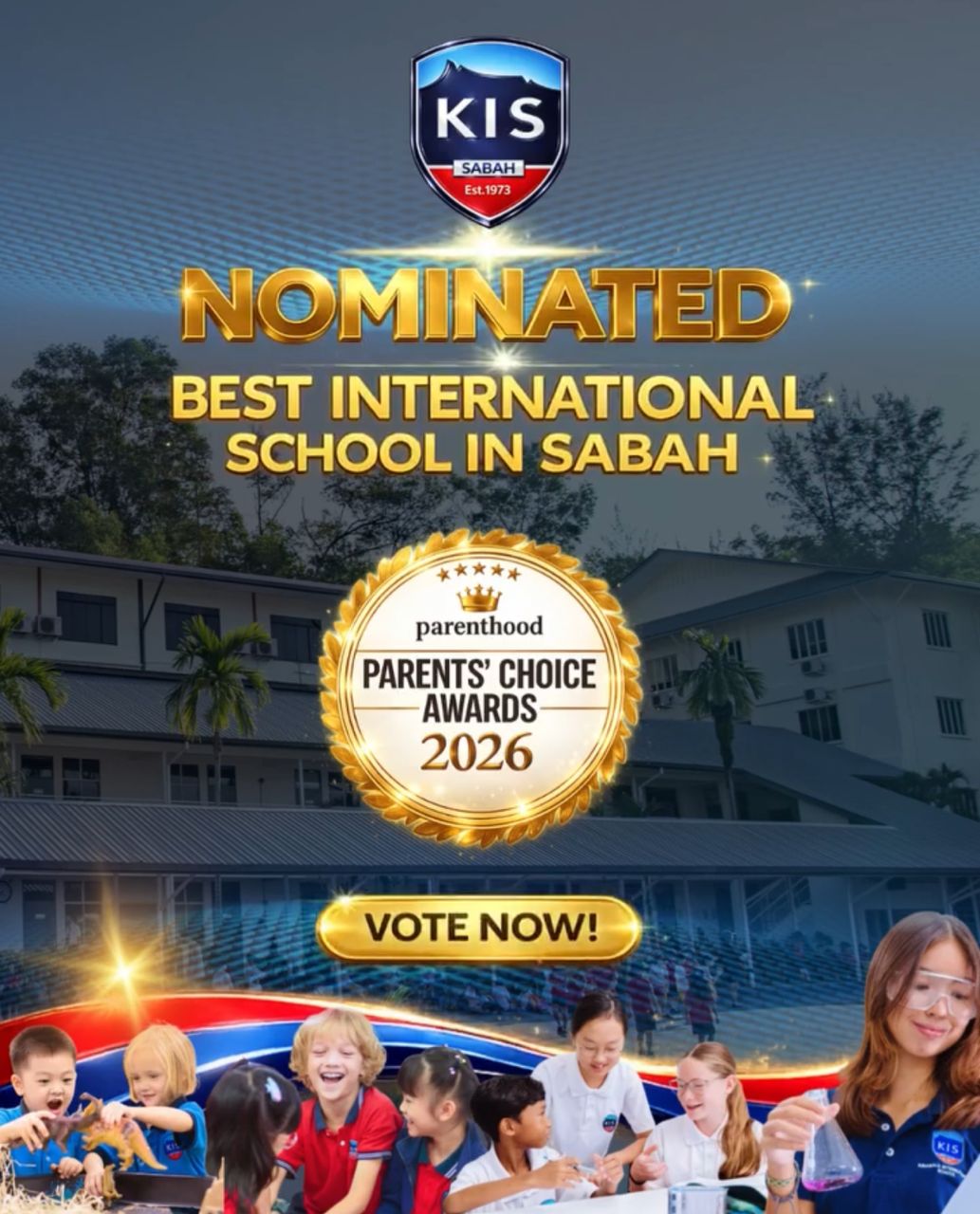 Kinabalu International School (KIS) has been nominated for the Parents’ Choice Awards 2026 by Parenthood Magazine Media under the category of “Best International School in Sabah.”