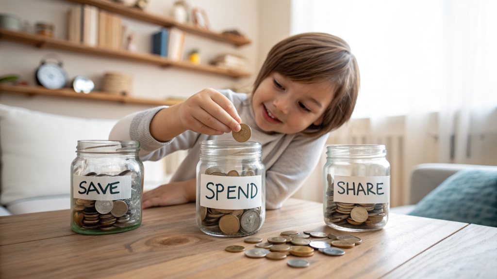 Parents can introduce saving jars, piggy banks, or even digital savings accounts for older children. Encourage children to set short-term goals, like saving for a favourite toy, and long-term goals, such as a bigger item they want later. Celebrate their progress and praise the act of saving itself rather than just the purchase at the end.