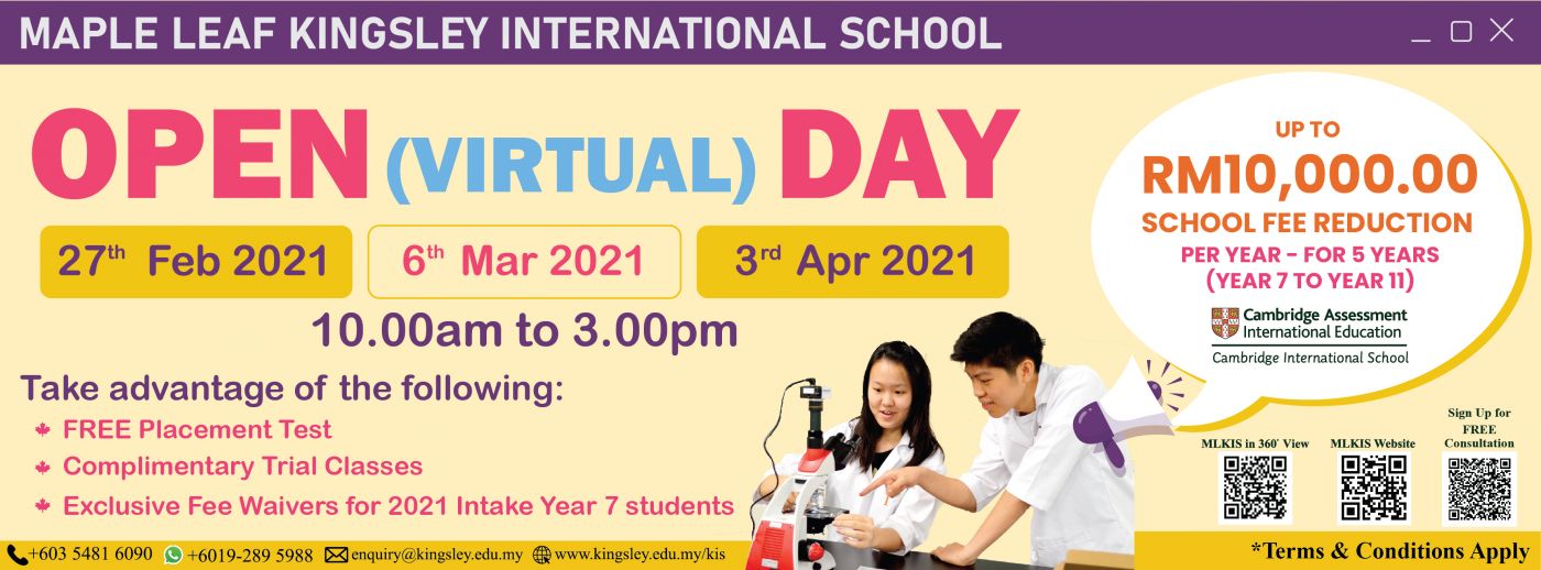 Don’t miss our Open (virtual) Day at Maple Leaf Kingsley International School on 27th February, 6th March and 3rd April 2021.