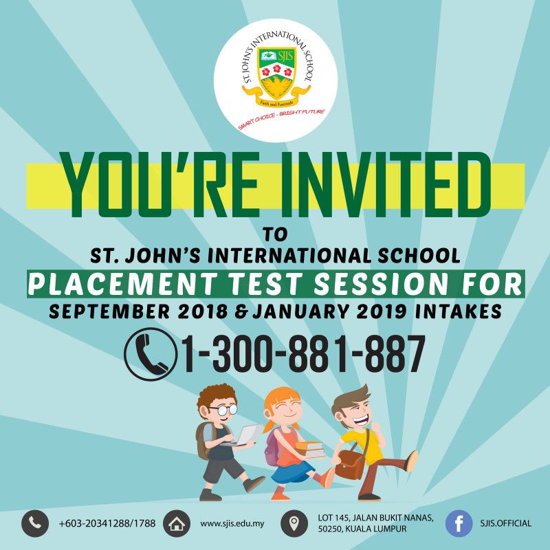 St. John's International School will be having placement test sessions throughout the year for their September 2018 and January 2019 intakes!