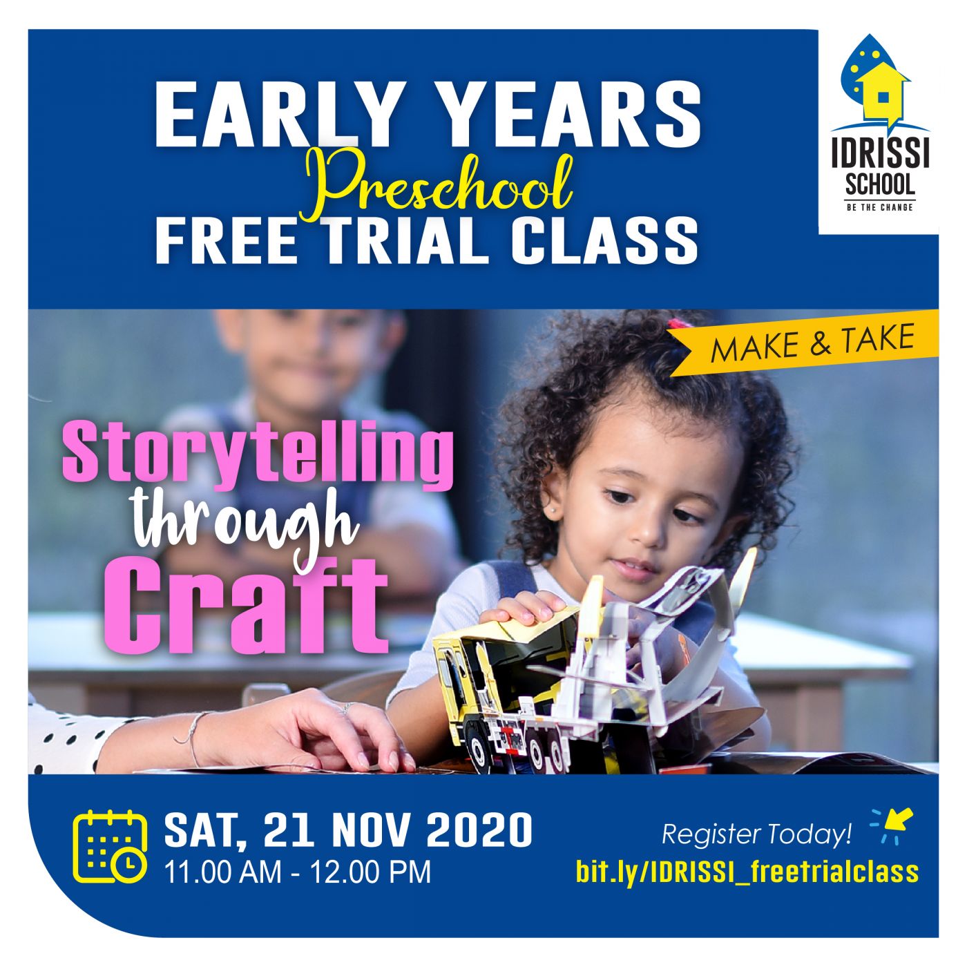 Catch an hour of our Make & Take Corner, “Storytelling through Craft” - one of the many wonders in IDRISSI Nature-Based Preschool. Open for children aged 4 to 6. Limited slots available, sign up now at bit.ly/IDRISSI_freetrialclass