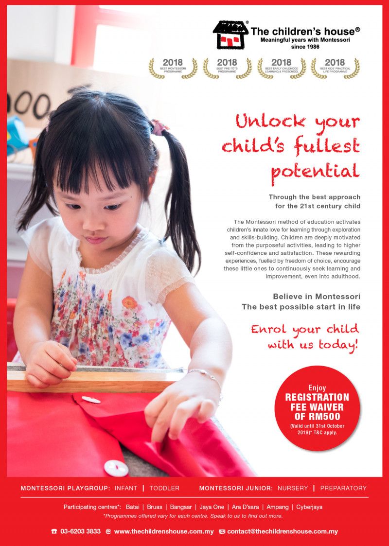 Enrol your child with The children's house from 5th September to 31st October 2018 and enjoy a REGISTRATION FEE WAIVER of RM500!