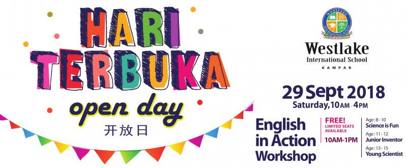 Westlake International School would like to invite you and your family for their Open Day on Saturday, 29 September 2018 from 10am to 4pm.