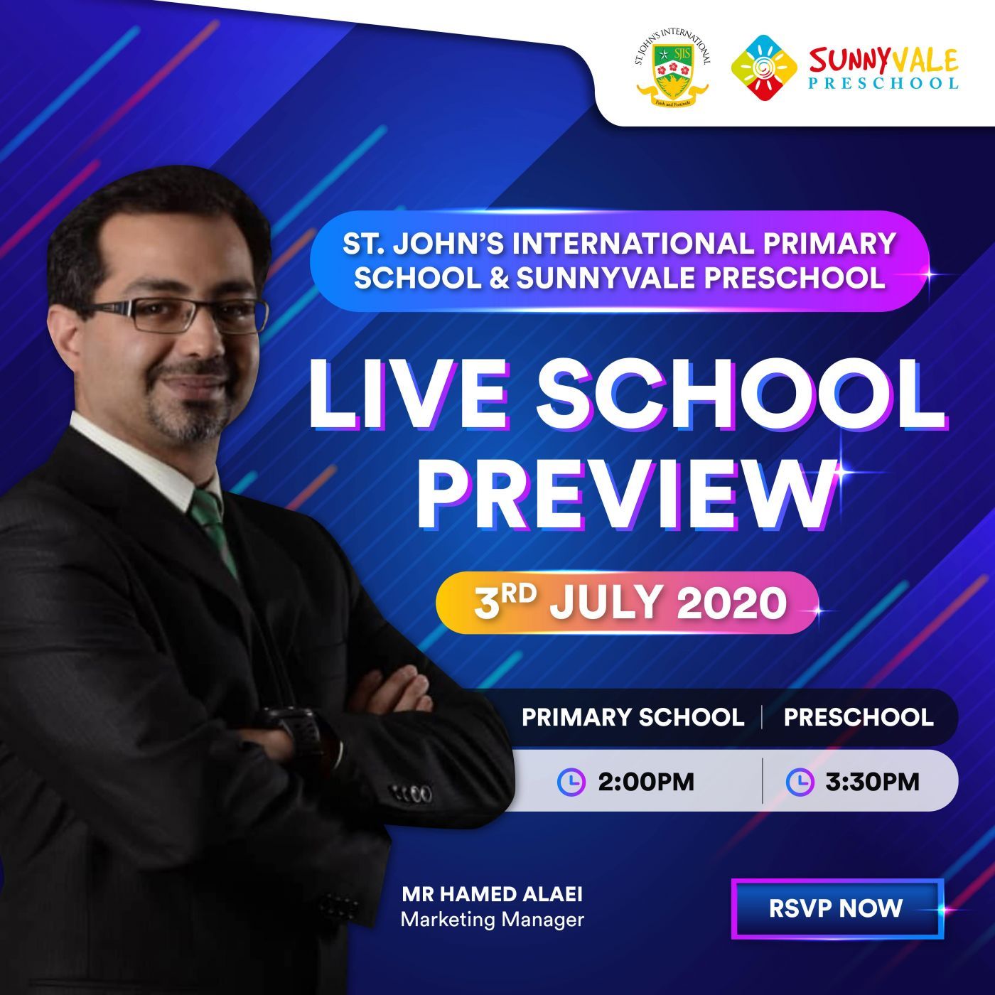Join us in a session filled with facts and information on St. John's International Primary School and Sunnyvale Preschool, their unique attributes and what makes them your ideal choice for Primary and Preschool Education destinations. Please book your place in the session with us through the following form. See you there! For RSVP, click here: https://forms.gle/MP9MZ5yPHaN3JafD7