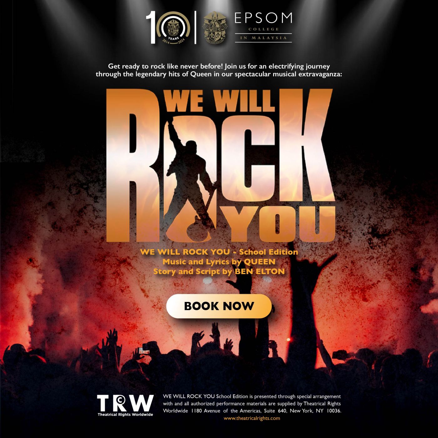 In commemoration of our 10th Anniversary, join us for an electrifying journey through the legendary hits of Queen in our spectacular Senior School musical production of, 'We Will Rock You.' From the anthemic 'We Are the Champions' to the iconic 'We Will Rock You,' experience the magic of Queen's timeless classics LIVE on stage.