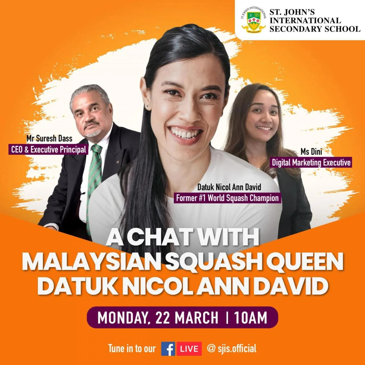 St. John’s International Secondary School FB Live: A Chat with Malaysian Squash Queen Datuk Nicol Ann David (22nd March 2021)