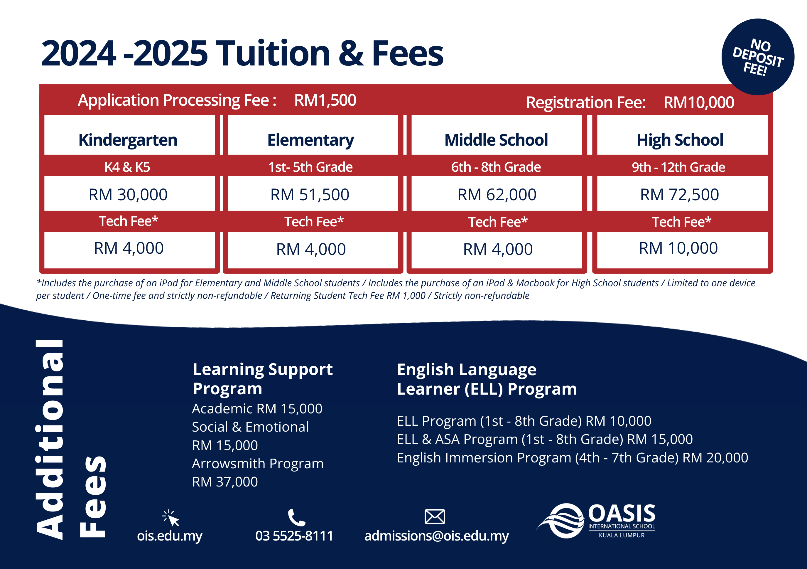 Oasis International School - Kuala Lumpur Fees Structure
